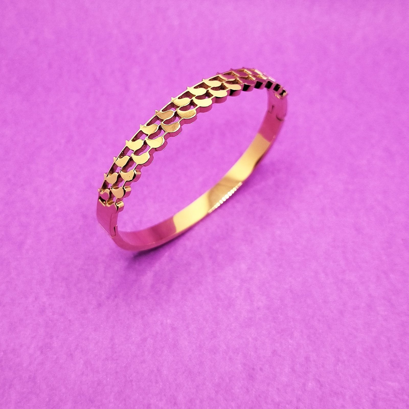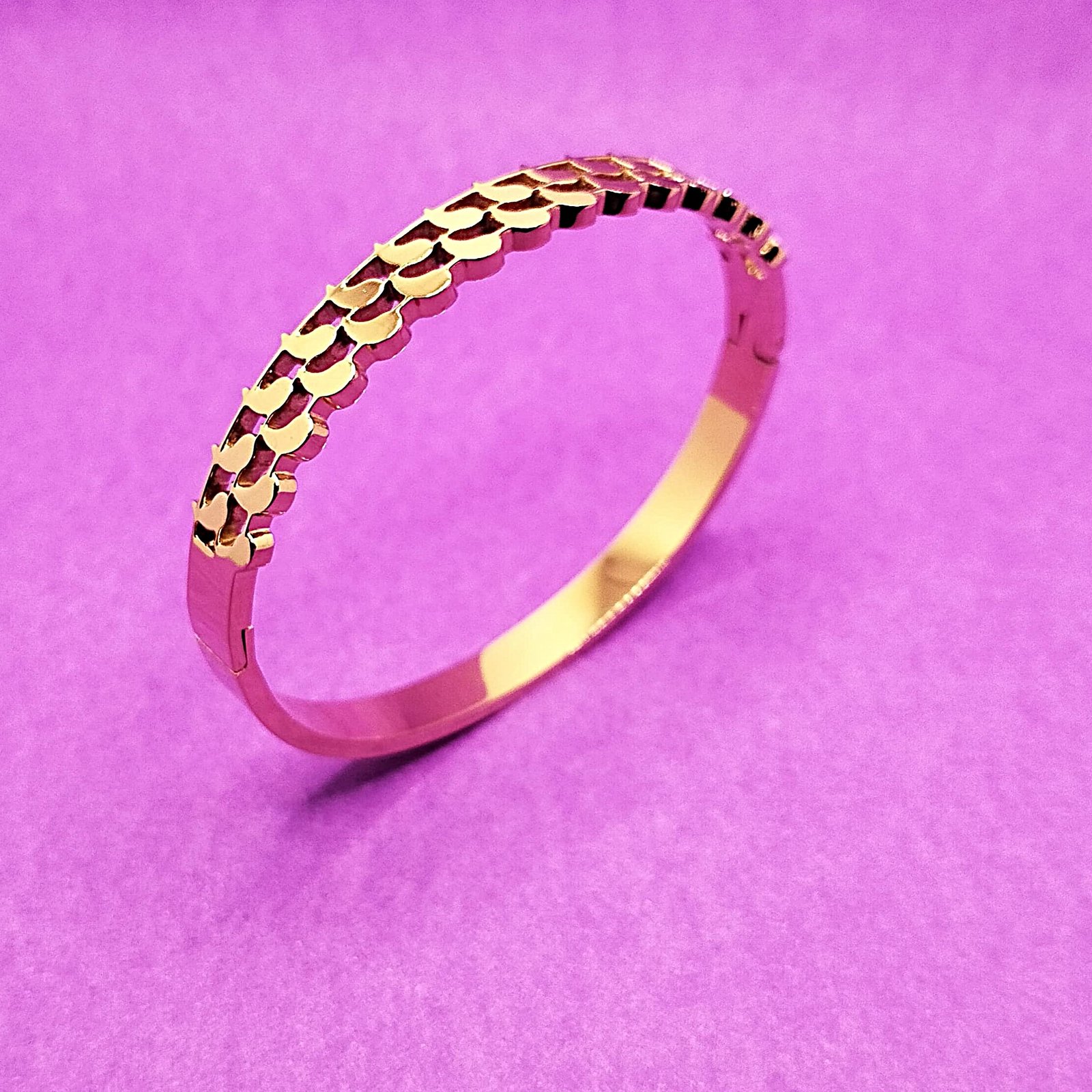 Introducing the “Ribbed Cuff”—a bold statement piece that seamlessly blends modern sophistication with timeless elegance. This exquisite cuff bracelet features a meticulously crafted ribbed texture, adding depth and dimension to its sleek design. Plated with a lustrous finish, the “Ribbed Cuff” catches the light beautifully, creating a captivating interplay of shadows and shine. Its open-ended design ensures a comfortable fit, making it effortlessly chic for any occasion. Whether worn alone or stacked with other pieces, this cuff is a must-have for those who appreciate understated luxury and contemporary style.